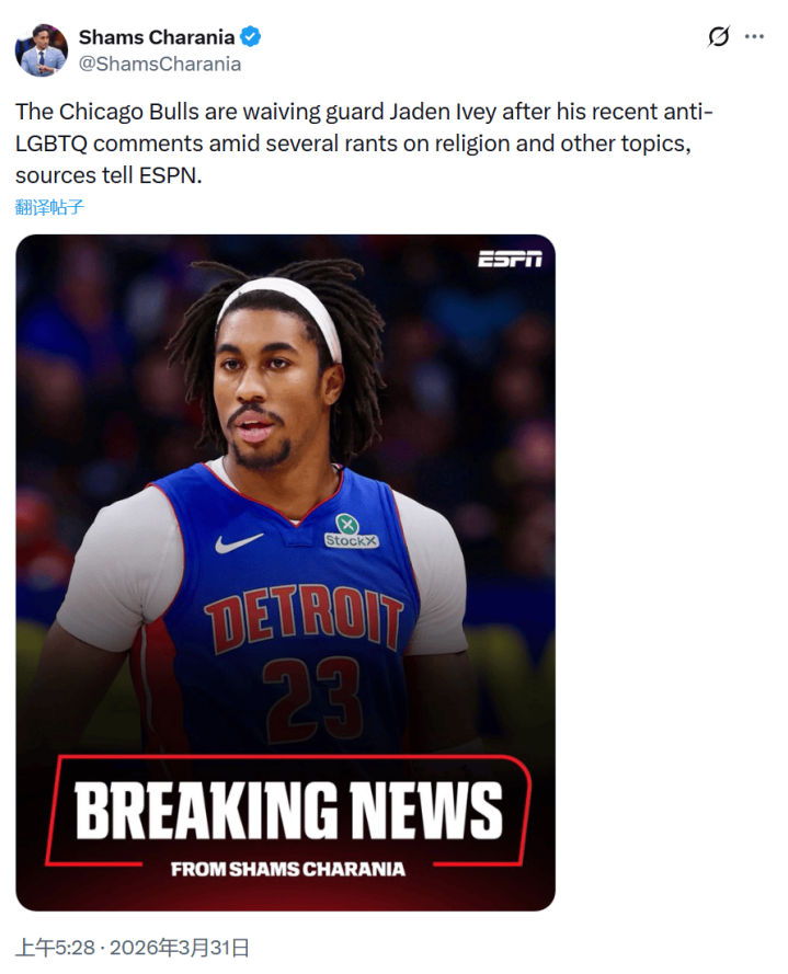 本赛季,艾维合座领路低迷,场均仅能得到8.5分、2.5个篮板和1.8次助攻,与选秀时的预期相去甚远。其异日也充满不细目性。Evan Sidery直言在清空酬酢媒体的时候,艾维就也曾患上了抑郁症。公牛随队记者Joe Cowley更是明确暗意,瞻望艾维很快被裁掉。而就在Joe Cowley发布没多久,Shams就爆出公牛队也曾裁掉了艾维。