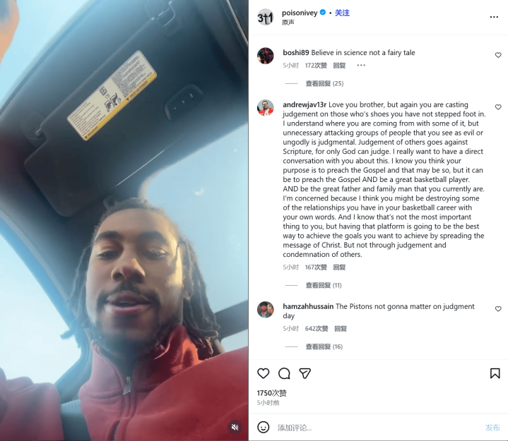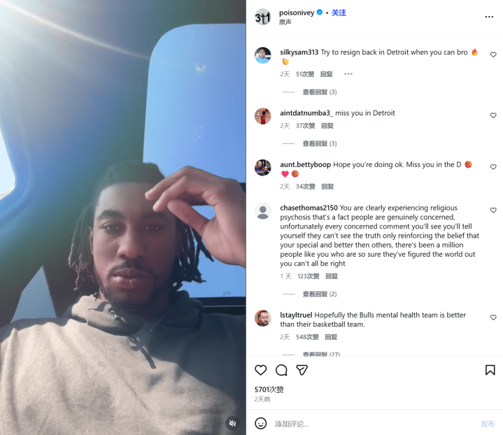 动作2022年NBA首轮5号秀,艾维生活于今可谓气运多舛。上赛季,艾维遭受左腿腓骨骨折,赛季提前报销;本赛季,他未能赢得活塞队的提前续约公约,在往返松手日前被往返至公牛,不意来到新球队后又受左膝酸痛困扰,公牛官方已晓喻其本赛季报销。此前被DNP时,艾维就曾披露过凄怨情感,称我方膝盖伤病缠身,早已不是从前的我方,还暗意“也曾的艾维也曾死了,我在基督里赢得了壮盛”。