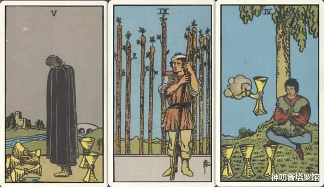 牌:圣杯五+ 权杖九+ 圣杯四+