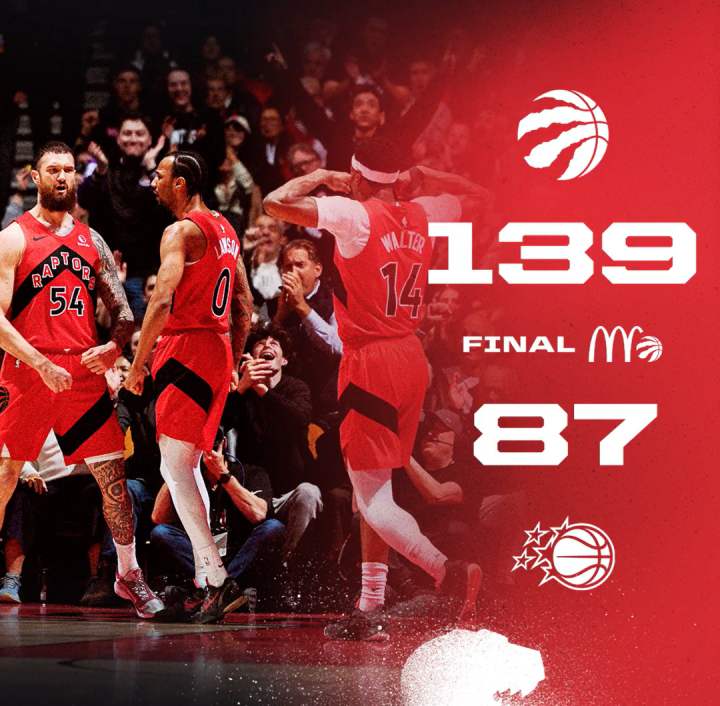 其实吧,50+分差历史也有过,比这更多的也不在少数,但这场比赛的不同在于,魔术简直是只花了半节就被猛龙击溃了,而且还创造了一个载入汗青的玷辱记录。
