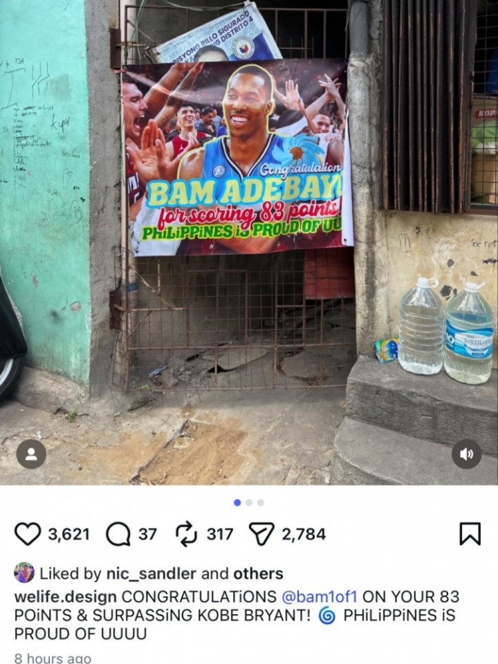 霍华德社媒晒出的相片中,菲律宾球迷庆祝阿德巴约拿到83分,ag真人app官方网站下载关联词用的是霍华德的相片。霍华德还晒出了一张两东谈主相片对比。
