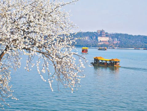 昨天,颐和园西堤数百株山桃轮番怒放,粉嫩花蕾缀满枝端,ag真人app与岸边绦柳的新绿逸趣横生,勾画出一幅醉东谈主的“气象宜人”春日画卷。本报记者吴镝摄