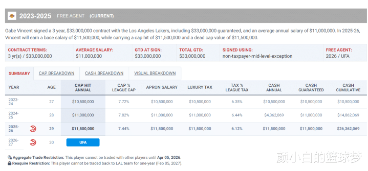 文森特三年3300万的公约到期后他可能就莫得千万年薪的可能性ag真人(AsiaGaming),今夏文森特只可去追赶底薪或部分中产560万驾驭的公约了。