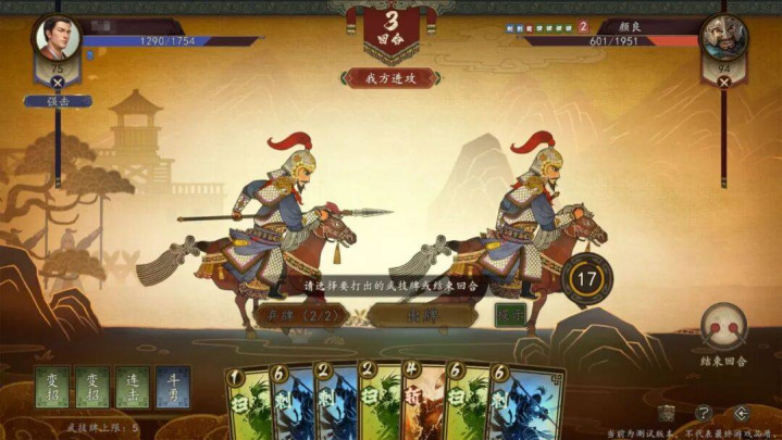 游戏不仅为这个对战系统野心了个性的皮影戏界面,还野心了一套参考单机游戏的对局限定。玩家不但要考虑天、地、东说念主的类“剪刀石头布”限定,还要如打牌般凑出顺子或春联才能取胜。而《三国志》单机游戏中的单挑或激辩手段,也延续到了本作之中酿成种种buff,给了玩家绝地翻盘的契机。