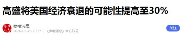 笔据高盛公司3月26日发布的最新讲解,由于耐久的交易摩擦和战略波动,好意思国经济阑珊的可能性仍是升迁到了30%,这比之前的揣摸又跨越了5个百分点。